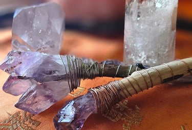 Immerse yourself in the enchanting world of our handcrafted magic wands, artfully designed from old growth redwood or uniquedriftwood pieces. Each wand is a unique creation, skillfully carved to preserve the natural beauty and energy of the ancient wood. The richness of the redwood, known for its strength and durability, is perfectly complemented by an array of carefully selected crystals and stones, each chosen for their profound healing properties.