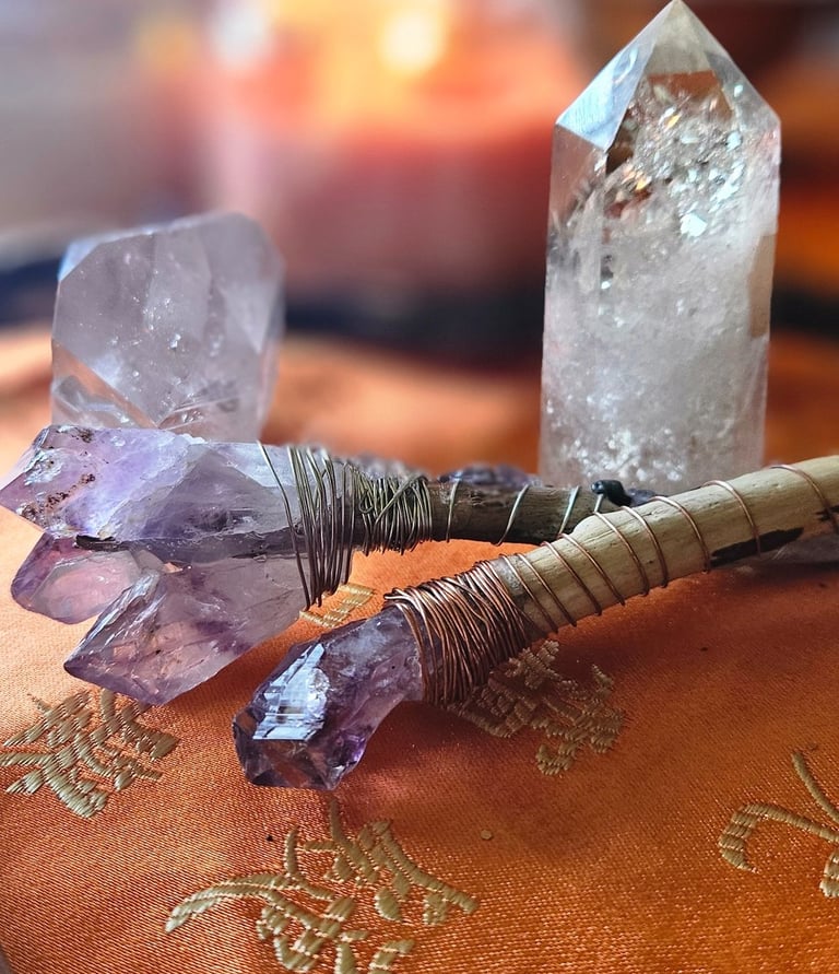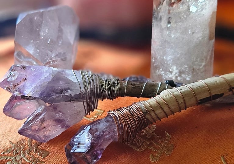 Amethyst, clear quartz, and rose quartz are just a few of the stones incorporated into these wands, enhancing their mystical abilities and amplifying the positive energies they channel. The smooth, polished surfaces feel comforting in your hand, inviting you to connect with their transformative power.